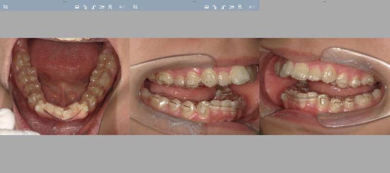 一旦クリンチェックが返ってきているところですが、想定していたよりもステージ数がかなり少なくなっており、正直少し驚いております。今回、臼歯が離開している位置で下顎前方位のバイトを採得してスキャンしておりますが、