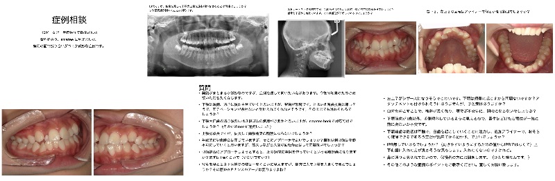 以前相談させていただいた症例で、資料も前と同じです。早期に取り組んだ方がよいとお伝えしたのですが、・先天欠損の左上2を成人まで空隙のままになること(リテーナーのある間はリテーナーに人工歯を付けられるけれど)